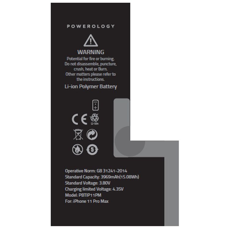 بطارية هاتف بوليمر ليثيوم أيون بقوة 3969 مللي أمبير، 15.08 واط ساعة لهاتف آيفون 11 برو ماكس - أسود