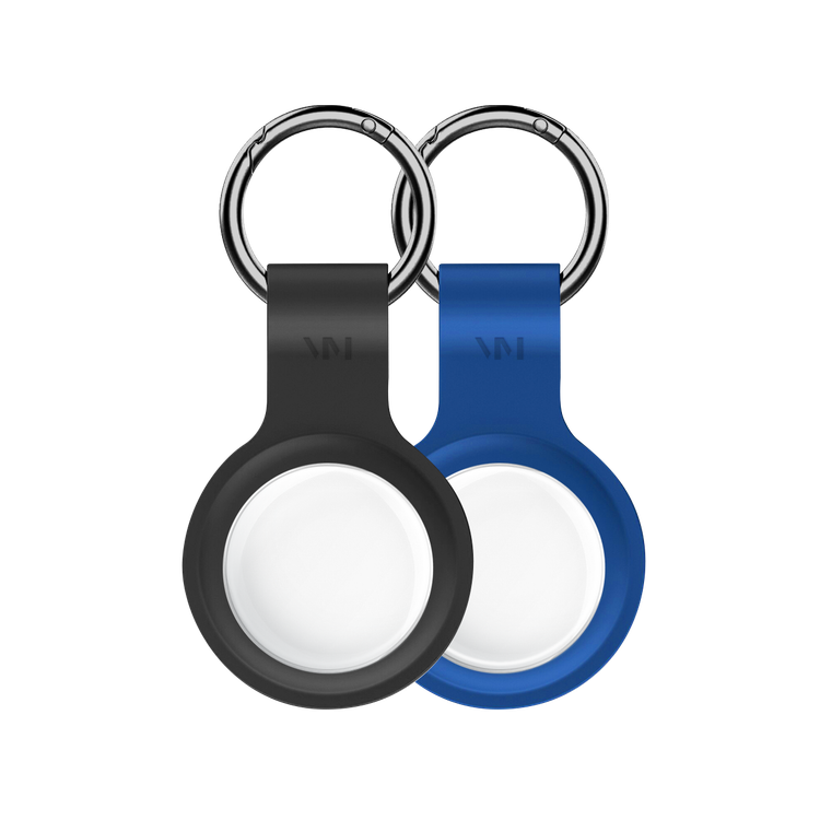 فيفا مدريد ايرتراكس فليكسو جراب ثنائي حزمة من السيليكون متوافق مع ايرتاغ ، غطاء حماية من الخدوش ، حامل مضاد للضياع مع حلقة مفاتيح مناسبة لمتعقب ايرتاغ بلوتوث- أسود وأزرق