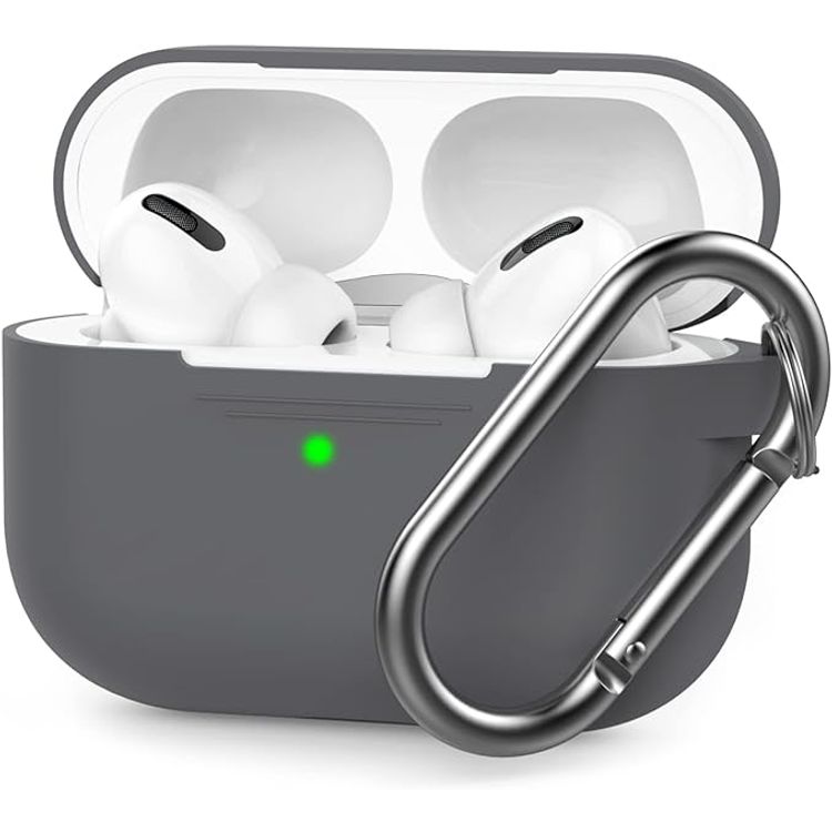 Ahastyle Retro 3D Design Premium Silicone Case with Carabiner Compatible for AirPods Pro - Ergonomic Classic Design - Dust & Shockproof Cover Supports Wireless Charging - Dark Gray