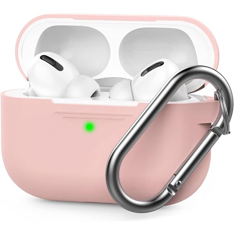 Ahastyle Retro 3D Design Premium Silicone Case with Carabiner Compatible for AirPods Pro - Ergonomic Classic Design - Dust & Shockproof Cover Supports Wireless Charging - Sakura Pink