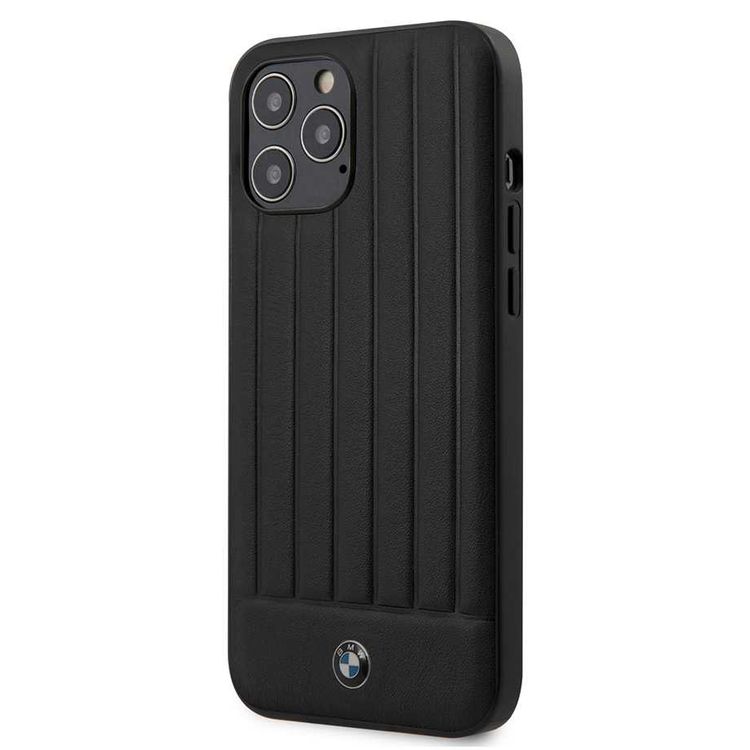 CG Mobile BMW PC/TPU Shiny Hard Case Genuine Leather with Vertical Hot Stamped Lines Compatible for iPhone 12 / 12 Pro (6.1") Shock & Scratch Resistant, Easy Access