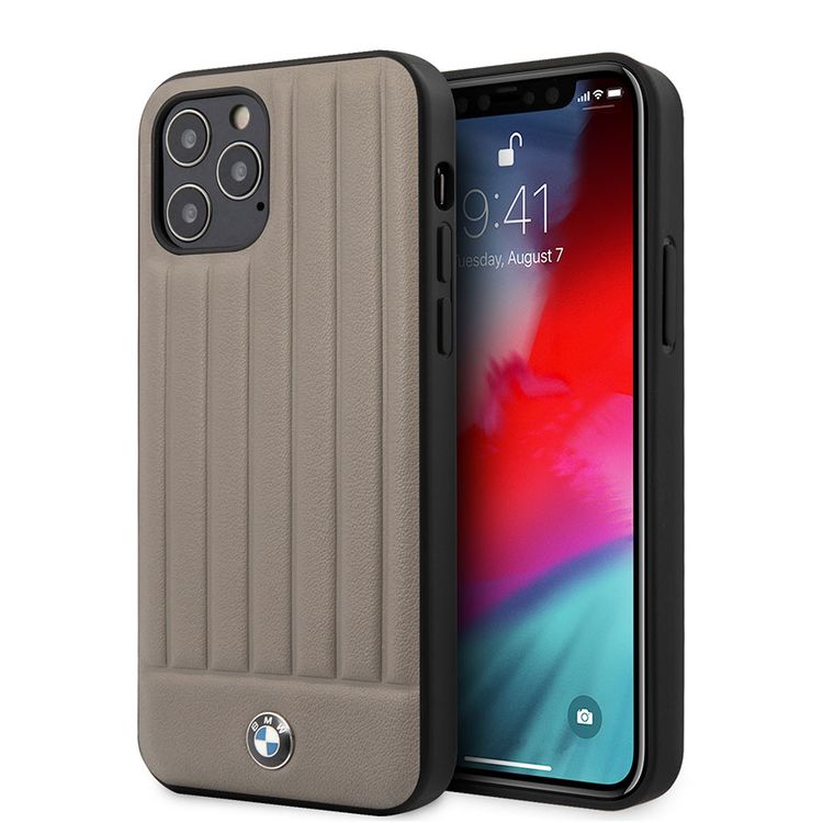 CG Mobile BMW PC/TPU Shiny Hard Case Genuine Leather with Vertical Hot Stamped Lines Compatible for iPhone 12 / 12 Pro (6.1") Shock & Scratch Resistant, Easy Access