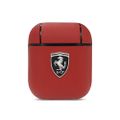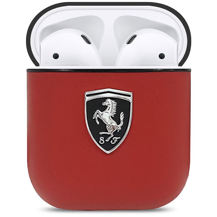 CG Mobile Ferrari PC Leather Black Shield Metal Logo Compatible for AirPods 1/2 - Red