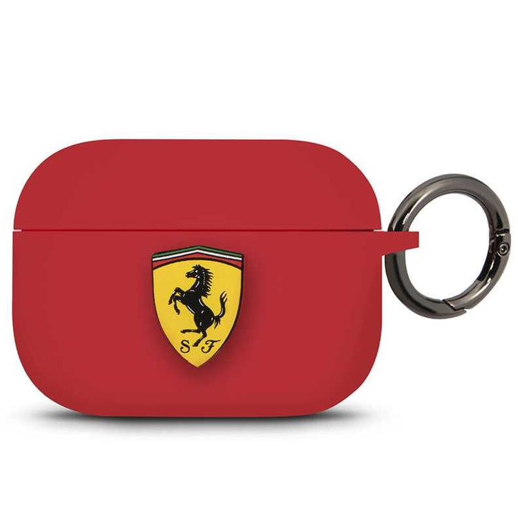 CG MOBILE Ferrari Scuderia Silicone Case with Ring for Airpods Pro, Shock Absorption, Drop Protection, & Dustproof Protective Cover Officially Licensed Red