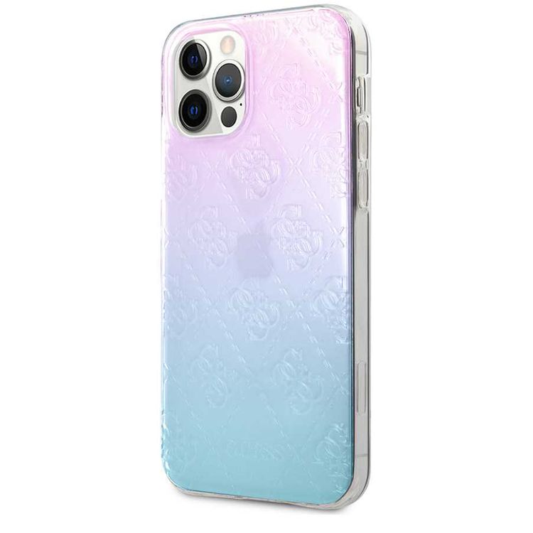 CG Mobile Guess PC/TPU 4G Pattern Hard Case Compatible for iPhone 12 / 12 Pro (6.1") Shock & Scratch Resistant, Easy Access to All Ports, Drop Protection Back Cover - Gradient Blue