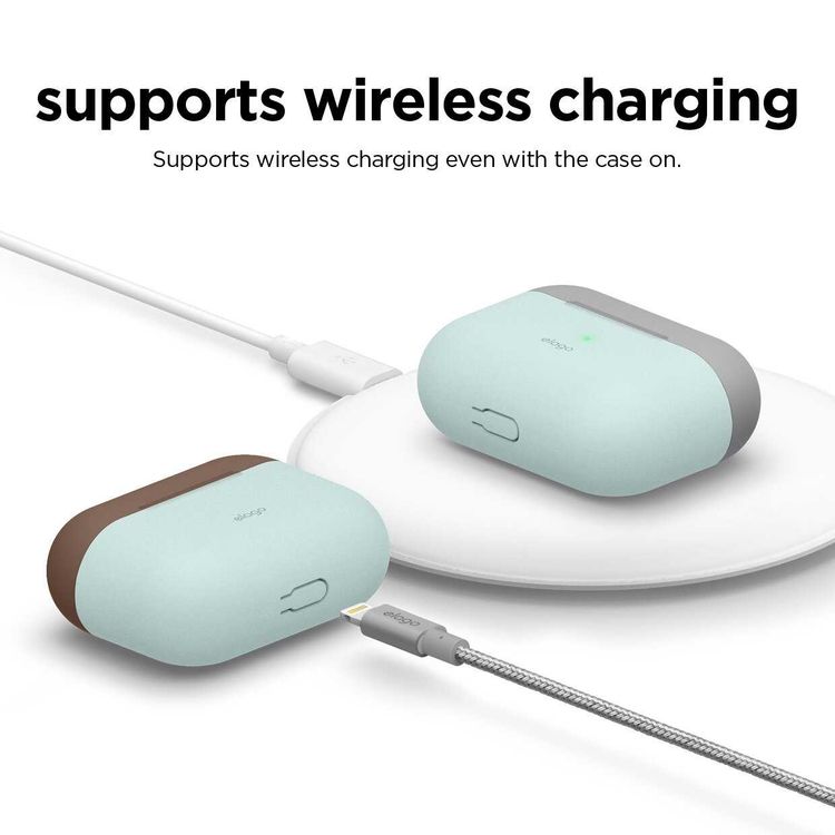 Elago Duo Case for Apple Airpods Pro - Top-Dark Brown / Medium Gray, Bottom-Mint