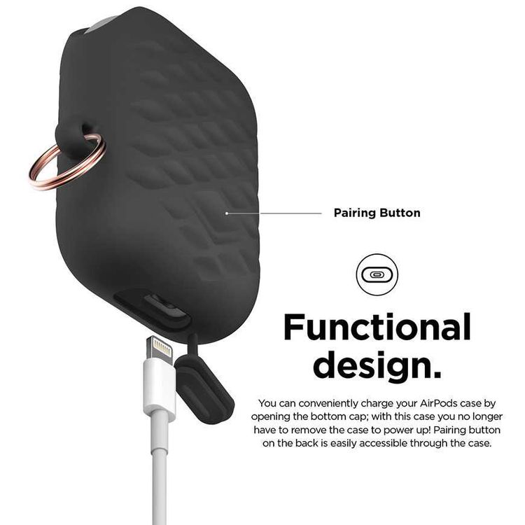 Elago Waterproof Active Case Compatible for Apple Airpods, Waterproof & Dustproof, Convenient for Charging, Aluminum Carabiner for Belt Strap/Bag, Impact Resistant - Black