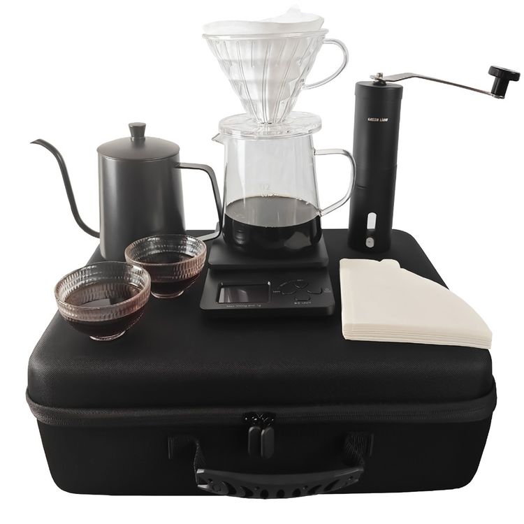 Green Lion G-50 Plus Coffee Maker Set with 100 Pcs Paper Filter, 600mL Pour Over Kettle Capacity, Travel Box, Glass Server, Digital Scale, Acrylic Dripper, Coffee Grinder - Black