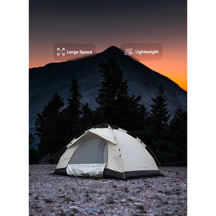 Green Lion GT-3 Camping Tent, Capable of Fitting 3-4 People, Portable & Lightweight Design, Easy to Assemble, UV Protection, Waterproof, Windproof Rope - Beige