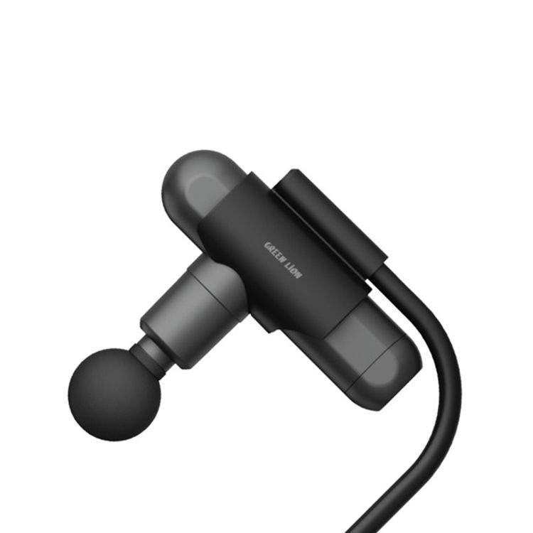 Green Lion Long Handle Massage Gun with 5 Interchangeable Heads, Up to 2 Hours Working Time, 4-Level Speed, Blood Circulation Increase, 1000mAh Battery Capacity - Black