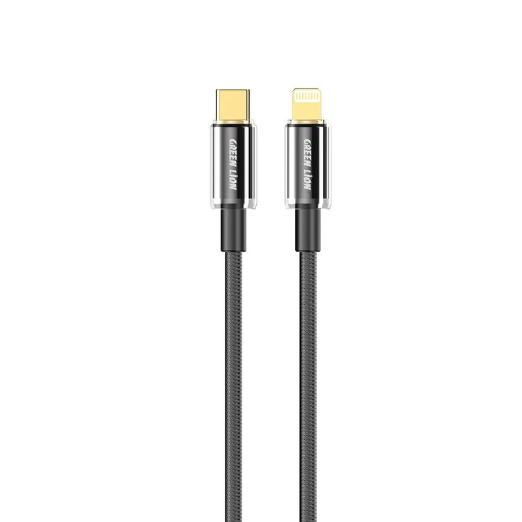 Green Lion USB-C to Lightning Tough Cable, Secure & Safe, Charge & Sync, Fast Charging, Transparent & Aluminum Alloy & 48 Braided Cable, 1m Cable Length- Black