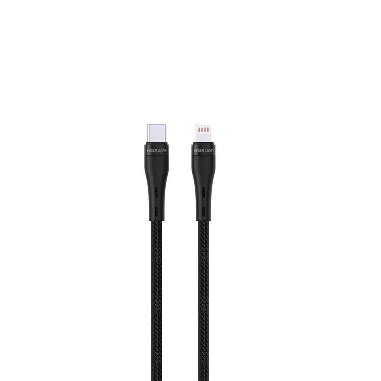 Green Lion USB-C to Lightning Braided Cable with 5m Length, 20W Charging, 480Mbps Data Transfer Speed, 10000 Bends Lifetime - Black