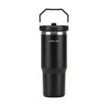 Green Lion Vacuum Tumbler with 900mL Capacity, Stainless Steel Material, Double-Wall Vacuum Insulation, Flip Straw Lid, Portable Handle, Food-Grade Material - Black