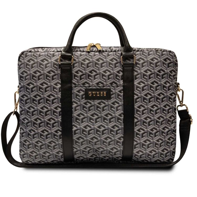 Exceptionally stylish and tasteful collection of protective bags was created for people who are looking for an accessory that can provide protection for their computer in fashionable style. The bag is dedicated for laptops with screen sizes up to 16". The G Cube collection signed by the fashion house Guess is a guarantee of the highest quality workmanship with exceptional design and designer aesthetics. The collection has been decorated using the highest quality G Cube print, making it an excellent choice for discerning people who appreciate exclusive looks and designer accessories. The G Cube motif, characteristic of the fashion house Guess, is a highly desirable pattern taken directly from the brand's latest collections. The patch with a large brand logo Guess placed on the central bag emphasizes the elitism of the collection, is its beautiful decoration and at the same time is a confirmation of the excellent quality and auentity of the collection. Vertical leather stitching in the color of the bag handle contrasts wonderfully with the G Cube motif. Gold hardware adds incredible elegance and chicness to the design. The bag was designed to be carried both in hand and slung over the shoulder - it is equipped with a detachable and adjustable strap. An additional special strap for attaching to the handle of a suitcase will be very useful during any travel.
