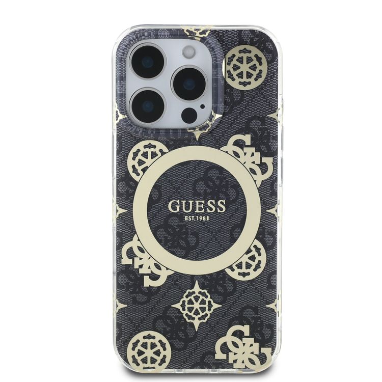 Guess Magsafe IML 4G Design Hard Case with Peony for iPhone 16 Pro Max, High Quality Material, Lightweight, Comfortable and Secure Grip - Black