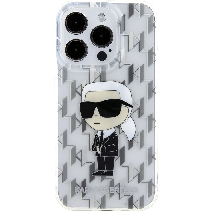 Karl Lagerfeld IML Hard Case with Iconic Monogram for iPhone 16 Pro, Drop Protection, Slim Profile, Lightweight, Comfortable Grip, Sustainable Packing - Transparent