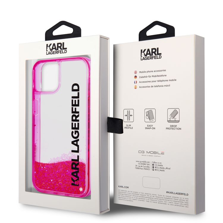 Karl Lagerfeld Liquid Glitter Elong Silicone Case Protector Compatible with iPhone 14 - Pink