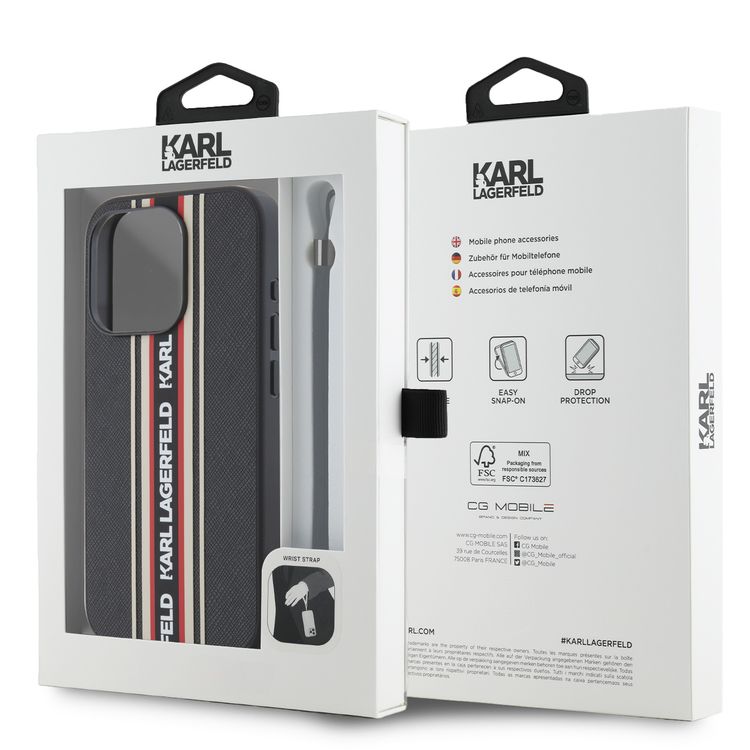 Karl Lagerfeld PU Hard Case with Athleisure Strips for iPhone 16 Pro, Lightweight, High-Quality Material, Comfortable and Secure Grip - Red