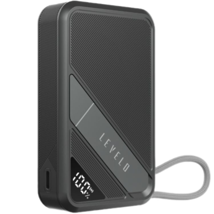 Levelo Air Link 10000mAh MagSafe Power Bank with Kickstand & Air Link, Built-in Type-C Input/Output Cable, Qi2 15 W Fast Charging, Grip Cable, Simultaneous Charging - Black