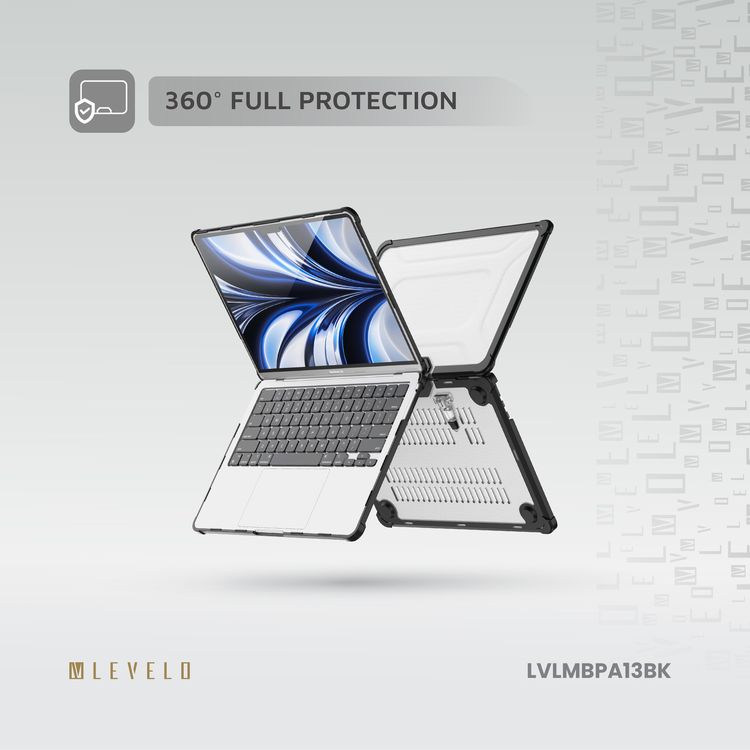 Levelo Espectro Case for MacBook Air 13.6" (2022-2024), 360° Full Protection, Foldable Stand Design, Built-in Air Vents, Shock-Proof Edges, Easy Installation & Removal - Black