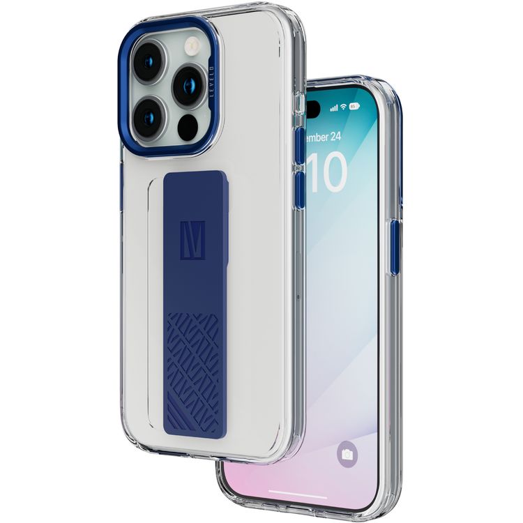 Levelo Graphia IMD Silicone Grip Case for iPhone 15 Pro, Anti Scratch Design, Metal Camera Protection, Extra Silicone Grip Case, Mount Grip Band - Blue