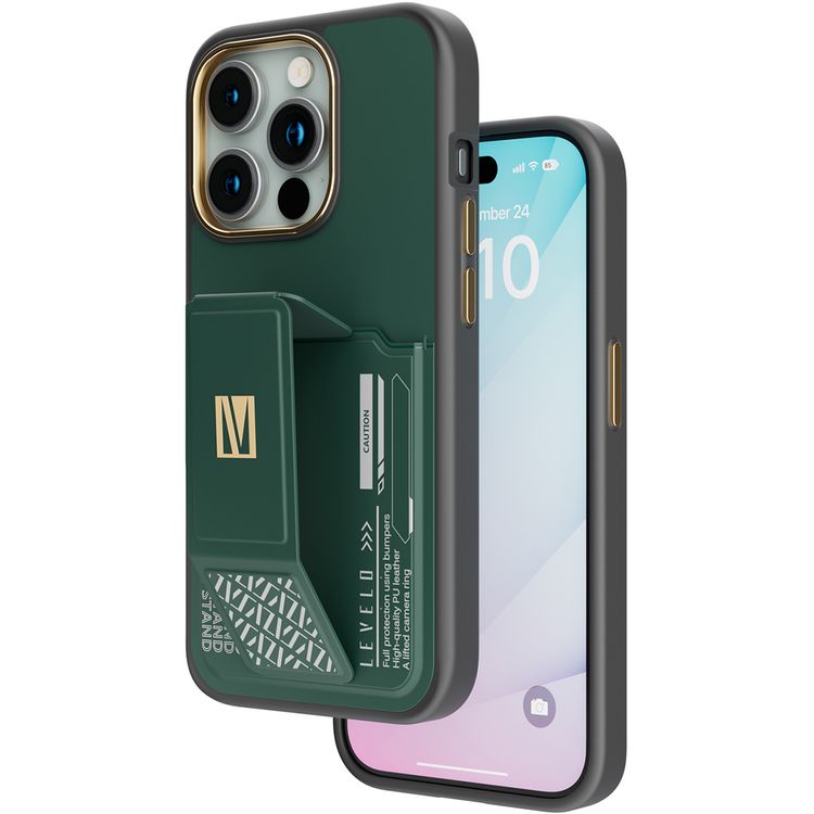 Levelo iPhone 15 Pro For Morphix Gripstand Case With Cardholder - Green