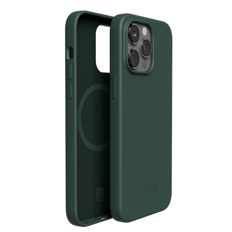 Levelo Iris Magsafe Compatibility Liquid Silicone Case for iPhone 14 Pro Max, Magsafe Compatible, Camera lens Protection, Shock-Proof Edges - Dark Green