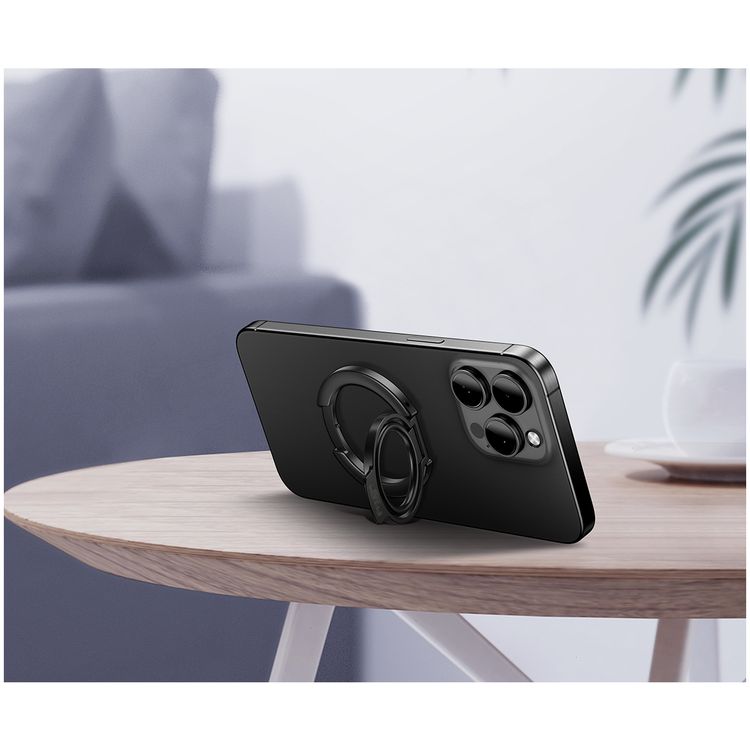 Levelo Luccio 2 in 1 Phone Ring Holder with Strong N52 Magnet, 3500Gs Magnetic Force, Durable Aluminum Alloy Materials - Black