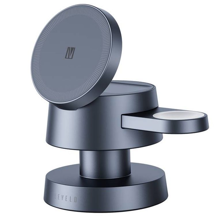 Levelo Luce 4-in-1 Wireless Charger with Bedside Lamp Design, Strong Magnet Force, 90° Foldable Angle, Simultaneous Charging, Built-in Hidden iWatch Charger Dongle - Gray