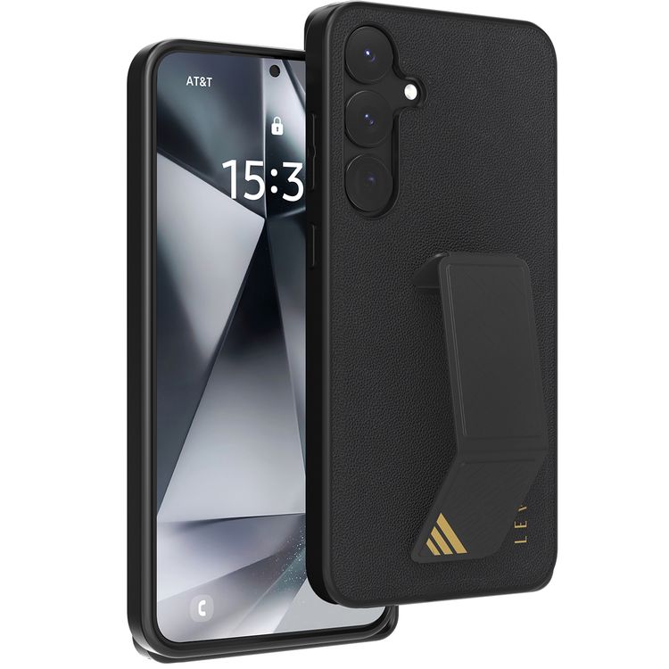 Levelo Morphix PU Leather Case for Samsung Galaxy S25 Plus, Built-in Leather Kickstand, Scratch-Resistant, Impact-Resistant Corners, Hybrid Case - Black