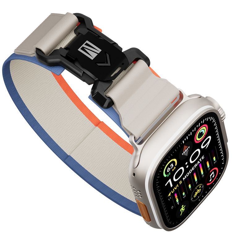 Levelo Rove Nylon Watch Strap with Magnetic Buckle, Compatible with 49/46mm Smartwatches & Apple Watch SE, Series 9, 8, 7, 6, 5, Abrasion Resistance, Hypoallergenic Material, Easy Snap-On & Quick Release Mechanism, Water-Resistant, Sweat-Resistant, 24/7 Wearability - White / Orange
