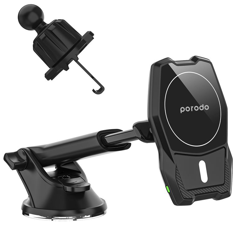 Porodo Magsafe Wireless Car Mount Dual Stand Combo 15W - Black
