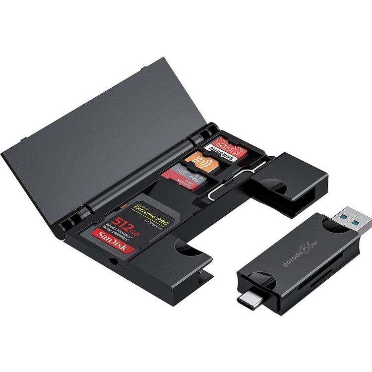 Porodo Blue 2 in 1 Card Reader with Card Holder - Black