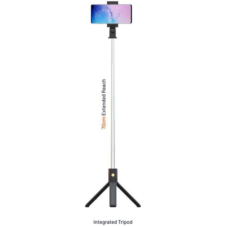 You can use the 2-in-1in 1 Porodo selfie stick tripod with a built-in wireless remote(max:33ft) to take selfies or separate the controller to take group shots for events like parties, graduations, weddings, and trips. It can be used as a standard selfie stick or as a simple tripod. This selfie stick tripod can be adjusted from 70 Centimeters in length. This makes it ideal for photography, Facetime, business, and other uses. The compact design allows you to take this selfie stick with you wherever you go, making a standard selfie stick lighter and more functional.