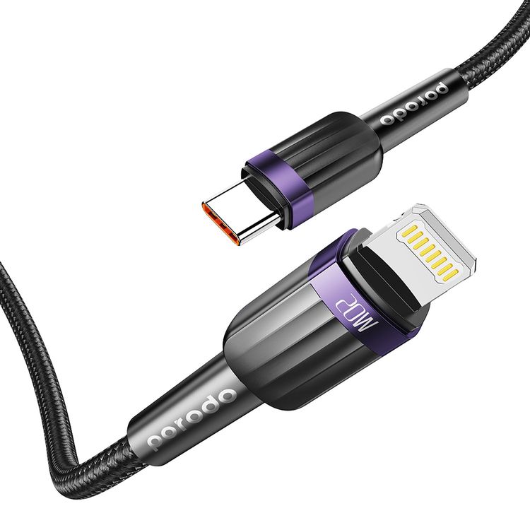 Porodo Braided 1M PD20W USB-C to Lightning Fast charging Cable - Purple