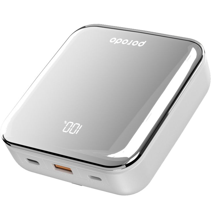 Porodo Compact Power Bank 20000mAh with Out Cable USB-A, Type-C and Lightning, 20W Power Delivery, Simultaneous Charging - Silver