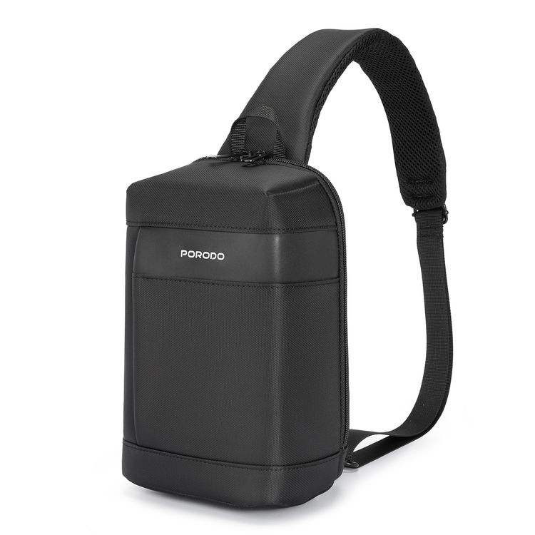 Porodo Cross Body Bag with Water-Resistant Material, Adjustable Shoulder Strap, Secure Device Storage, Padded Back Panel, Type-C Charging Port - Black