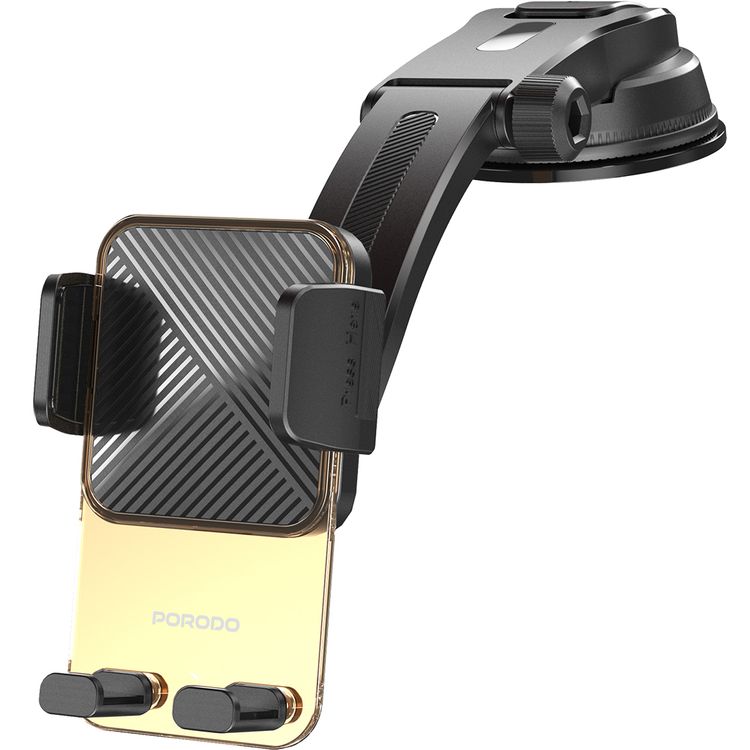 Porodo Crystal Mount with Extended Base, 60-90mm Grip Width, Transparent Design, Strong Adhesive, ABS & Silicone Material - Gold