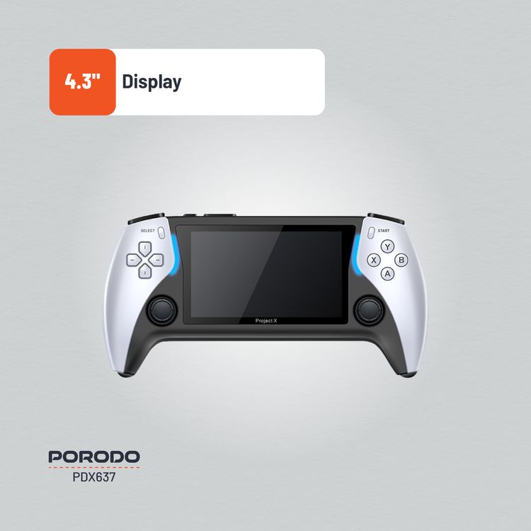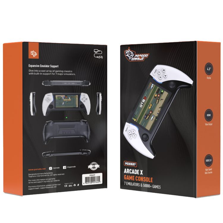Porodo Gaming 4.3" Handheld Arcade X Game Console, HDMI Video Output, 7 Emulators, more than 50000 Games, E-Book Reading - Black & White