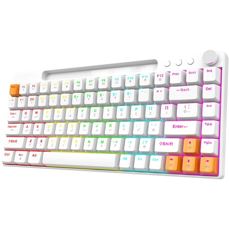 Porodo 84 Keys Mechanical Gaming Keyboard, 23 Blacklight Modes, Smooth Clicks, Arabic Keys, Compatible with Mac & Windows, Volume/Mute Knob - White