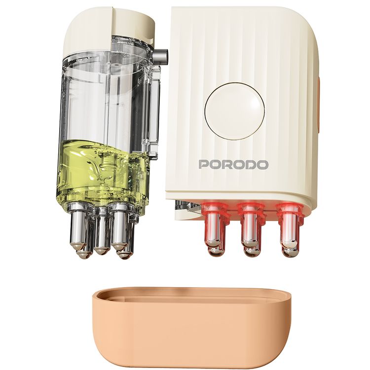 Porodo Lifestyle EMS Scalp Massager & Hair Oil Applicator with Red Light Therapy, Hair Root Rejuvenation, 9mL Tank Capacity, 150mAh Battery Capacity, IPX5 Rated Water-Resistant - Beige