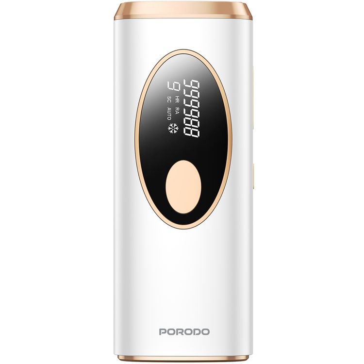 Porodo Lifestyle Ice-Cooling IPL Hair Removal Laser with UK 3-Pin Power Plug, LED Display Setting, Automatic & Manual Mode, 10°C Cooling, 7 Minutes Full-Body Treatment, 9 Intensity Levels - White
