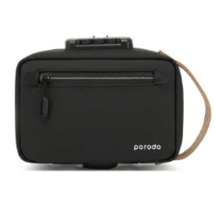 Porodo Lifestyle Nylon Fabric Leather Anti-Theft Storage Bag 8.2" with USB Flash Drive Holder, IPX3 Splash Resistant, USB-A Charging Compatibility,