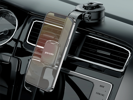 Porodo Suction Cup Car Mount Magnetic Windshield comes with six powerful magnets. The magnets type is N45. The Suction cup on this car mount is bigger than regular car mount with suction cup. It is 70mm bigger suction cup. You can find super sticky suction cup which is the point of this product’s strongness to hold the phone and being attached to the dashboard or any other places in the car. There is extra sticky Gel in this car phone holder. Its specific and unique design makes it more interesting.