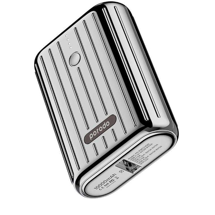 Porodo Power Bank 10000mAh QC3.0 with PD 20W, Dual Output, 3.5H Charging Time, Unique Design, Portable, Fast Charging - Silver