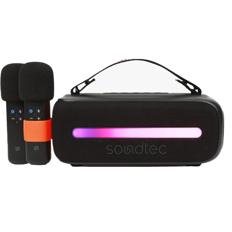 Porodo Soundtec 24W Bluetooth Speaker with Dual Wireless Microphone, Carrying Strap, Powerful Bass, FM Function, RGB Light - Black
