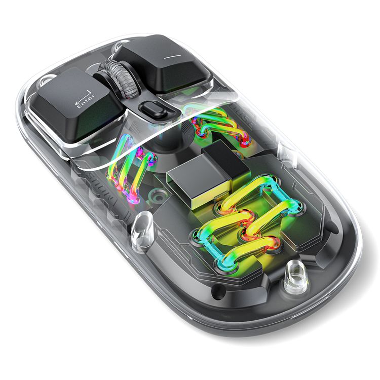Porodo Transparent Mouse and Bluetooth Dual Mode, Type-C Charging Port, Plug & Play, Windows/Mac/Android/iOS, Adjustable DPI - Black