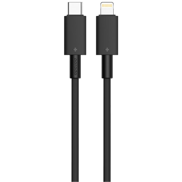 Porodo USB-C to Lightning PVC Cable, 480Mbps Transfer Speed, PD 27W, More than 15000 Bends Life Span, 1.2m Cable Length, Tangle Free - Black