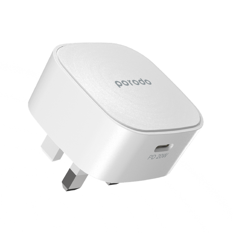 Porodo USB-C Adapter, Super-Compact Fast Wall Charger Power Delivery 20W UK with Built-in Protective Mechanism, Compatible for iPhone 12 Pro Max, 12 Pro/12, 12 Mini, 11 Pro Max