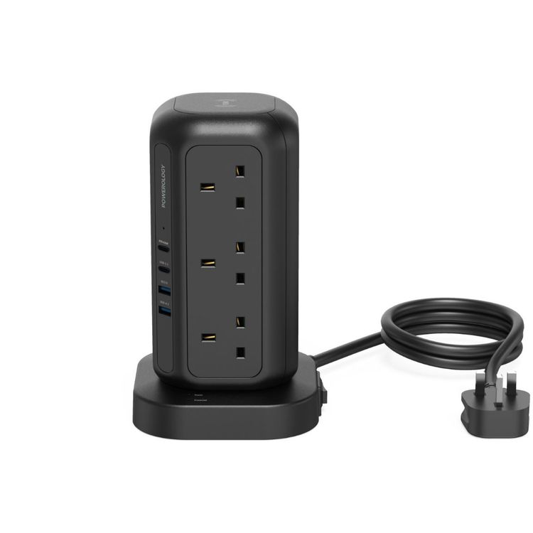 Powerology 12 Socket Multi-Port Tower Extension & Charge - Black